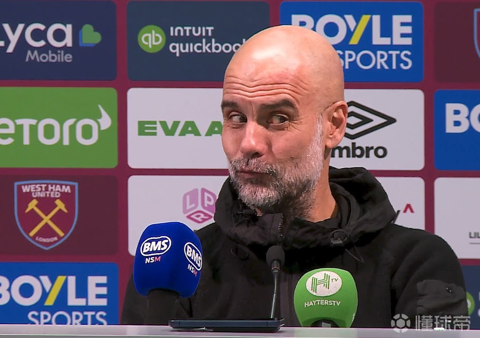 英超第30轮,曼城客场1-1战平西汉姆联,赛后,曼城主帅瓜迪奥拉出席新闻发布会接受媒体提问。